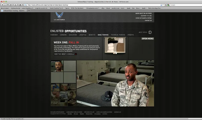 Basic Military Training. This site walked potential recruits through Basic Training. By taking them on a week by week video journey, it helped demystify the process by showing them what to expect during each stage of the process.